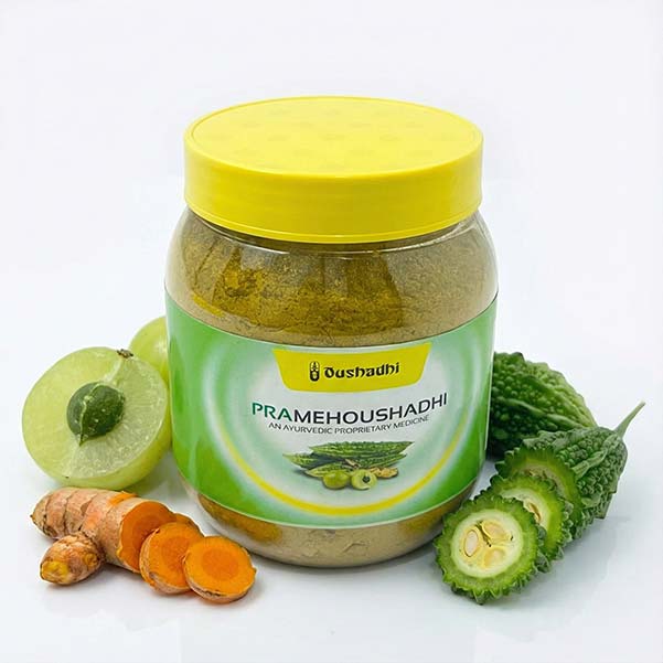 1. What is Pramehoushadhi used for? Pramehoushadhi is an Ayurvedic medicine powder used to manage Diabetes Mellitus. It is particularly effective in reducing common diabetic symptoms like extreme fatigue (tiredness), excessive sweating, drowsiness, and constipation.